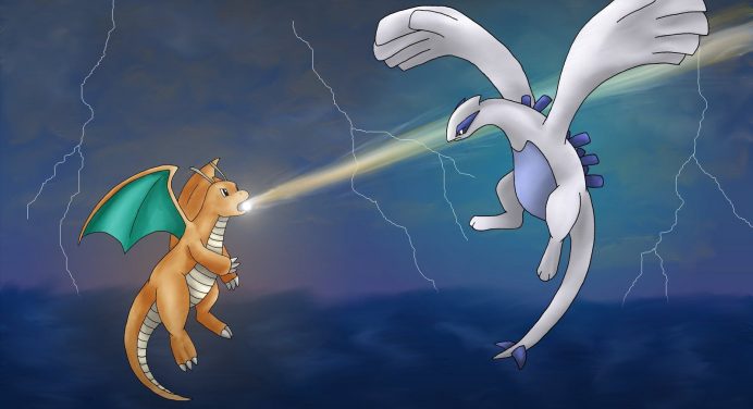 Dragonite vs. Lugia by artisticpuppy on DeviantArt